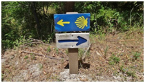 Inicialmente, o caminho era assinalado pela Vieira de Santiago (Concha de Santiago) que se apresenta sob a forma de elementos de bronze, de cerâmica, de etiquetas, de gravuras. Sendo o sentido a seguir indicado pelos “dedos” da vieira, ou seja, o lado aberto da concha indica a direcção de Santiago de Compostela.
