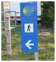 Uma chamada de atenção para as setas azuis que poderão aparecer (que normalmente apontam o sentido contrário) e que são a indicação do Caminho de Fátima, nomeadamente para orientação dos Peregrinos que de Santiago de Compostela se dirigem a Fátima.